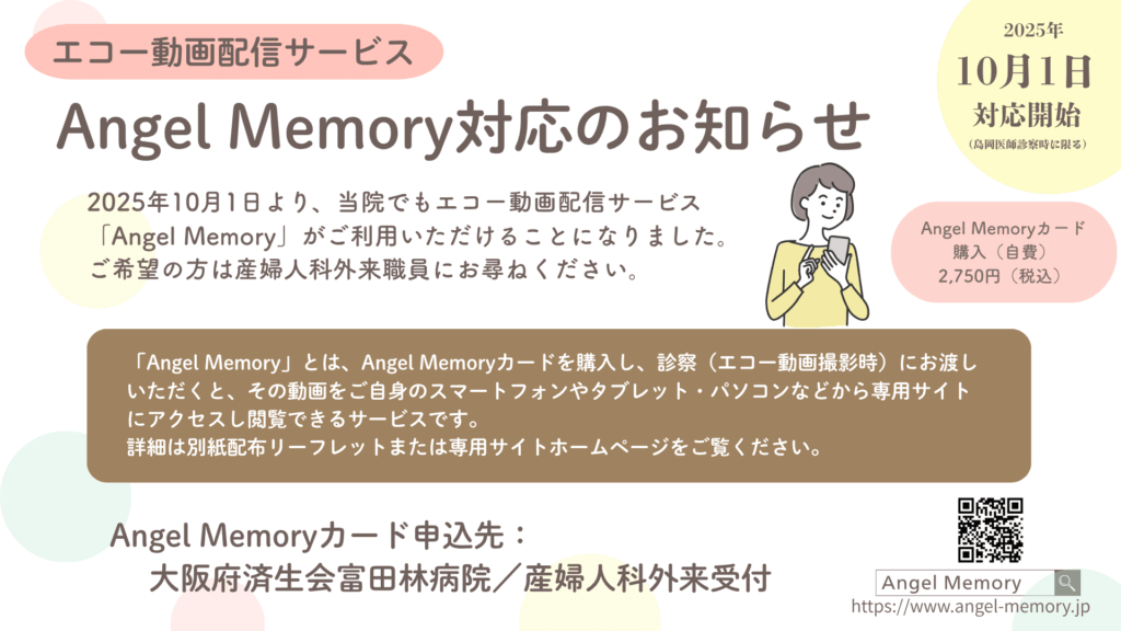 2025年10月1日より当院、産婦人科外来にて「エコー動画配信サービス“Angel Memory”」に対応いたしました。