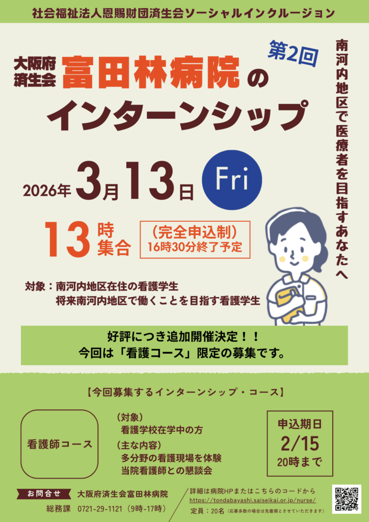 このたび、富田林病院看護部におきまして、第2回インターンシップを開催することとなりました。